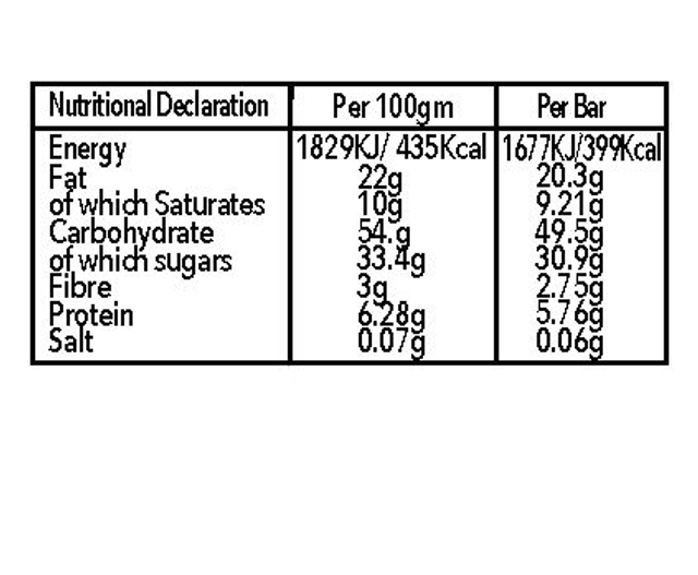 INGREDIENTS: OATS (Gluten Free), Partially Inverted Sugar Syrup, Unsalted Plant Butter, Plant Oils. (Sustainable Palm, Sunflower, Rapeseed), Soft Dark Brown Sugar, Sugar, Sugar, Glcose Syrup, Filing (25%) (Sugar, Hazelnut Paste, Cocoa Butter, Emulsifier (Lecithins (Soya)), Cocoa Butter, Cocoa Mass, Hazelnut Paste (9%), Rice Flour, Emulsifier (Lecithins (Soya).